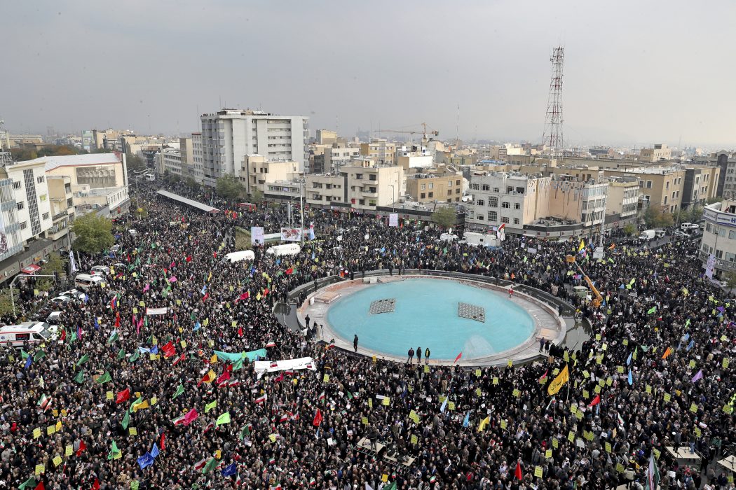 Tusentals demonstrerar till stöd för regeringen i Teheran måndagen 25 november. Foto: Ebrahim Noroozi/AP/TT