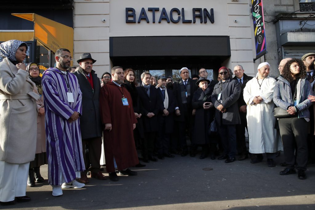 En minnesstund vid konsertlokalen Bataclan i Paris för att hedra de 130 människor som dödades i terrordåden i staden i november 2015. Francois Mori/AP/TT